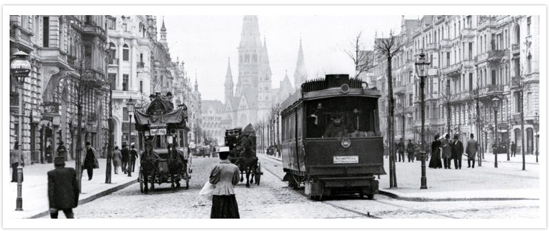 Eigentlich reicht die Geschichte des Kurfürstendamms zurück bis ins 16. Jahrhundert. Damals wurde ein sogenannter „Knüppeldamm“ angelegt, damit  Kurfürst Joachim II schneller von seinem Stadtpalast zu seinem Jagdschloss im Grunewald und wieder zurück gelangen konnte. Bis ins 19. Jahrhundert machte der Damm seinem Namen alle Ehre und war nichts anderes als eine staubige Straße. Erst Bismarck, beeindruckt von der Champs-Élysées,  änderte das und machte aus dem Damm eine herrschaftliche Flaniermeile. Der Tag, an dem die erste Dampfstraßenbahn über den Ku’damm fuhr, gilt als offizielles Geburtsdatum des Berliner Boulevards. Die folgende Zeitleiste gibt einen Überblick über seine wechselvolle Geschichte.
